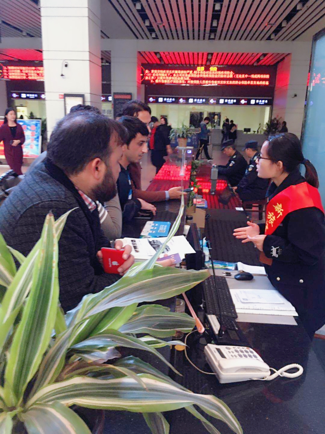 車站服務(wù)臺(tái)像往常一樣接待著旅客的問詢,這時(shí),一群外國(guó)人急匆匆地跑來(lái),說(shuō)著不太流利的英文,急切的需要幫助。