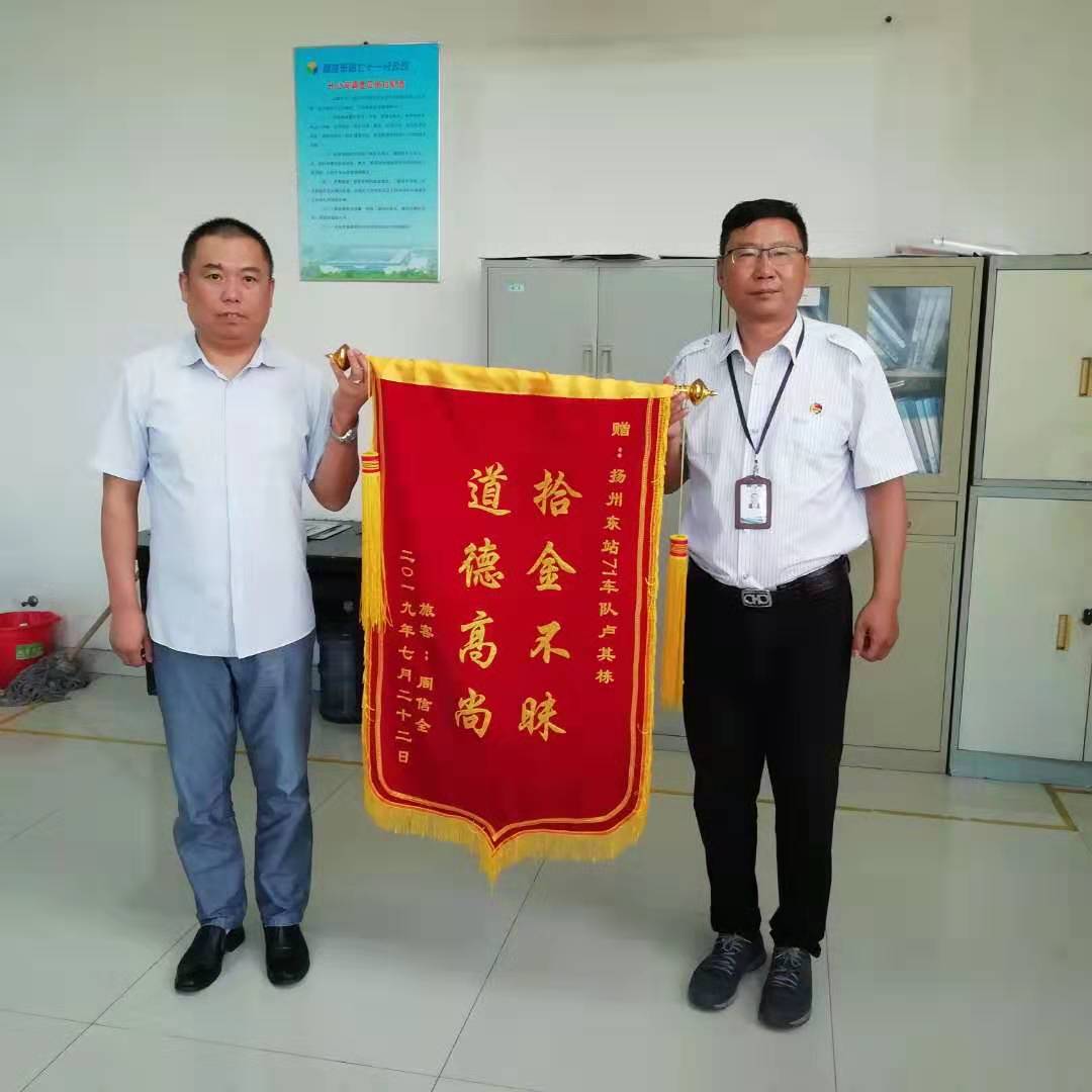 7月29日上午,揚(yáng)州汽車客運(yùn)東站收到旅客周信全送來的錦旗,稱贊駕駛員盧其棟“拾金不昧,道德高尚”。據(jù)了解,7月20日上午7點(diǎn),旅客周信全不慎將包遺忘在了從揚(yáng)州東站到南京的車上,包里有身份證、銀行卡、現(xiàn)金以及其他個(gè)人物品。當(dāng)日值班駕駛員盧其棟在車輛抵達(dá)南京車站后,在檢查打掃過程中,發(fā)現(xiàn)了周信全遺失的挎包,并將此事及時(shí)上報(bào)調(diào)度室,并于第二日交還該旅客。