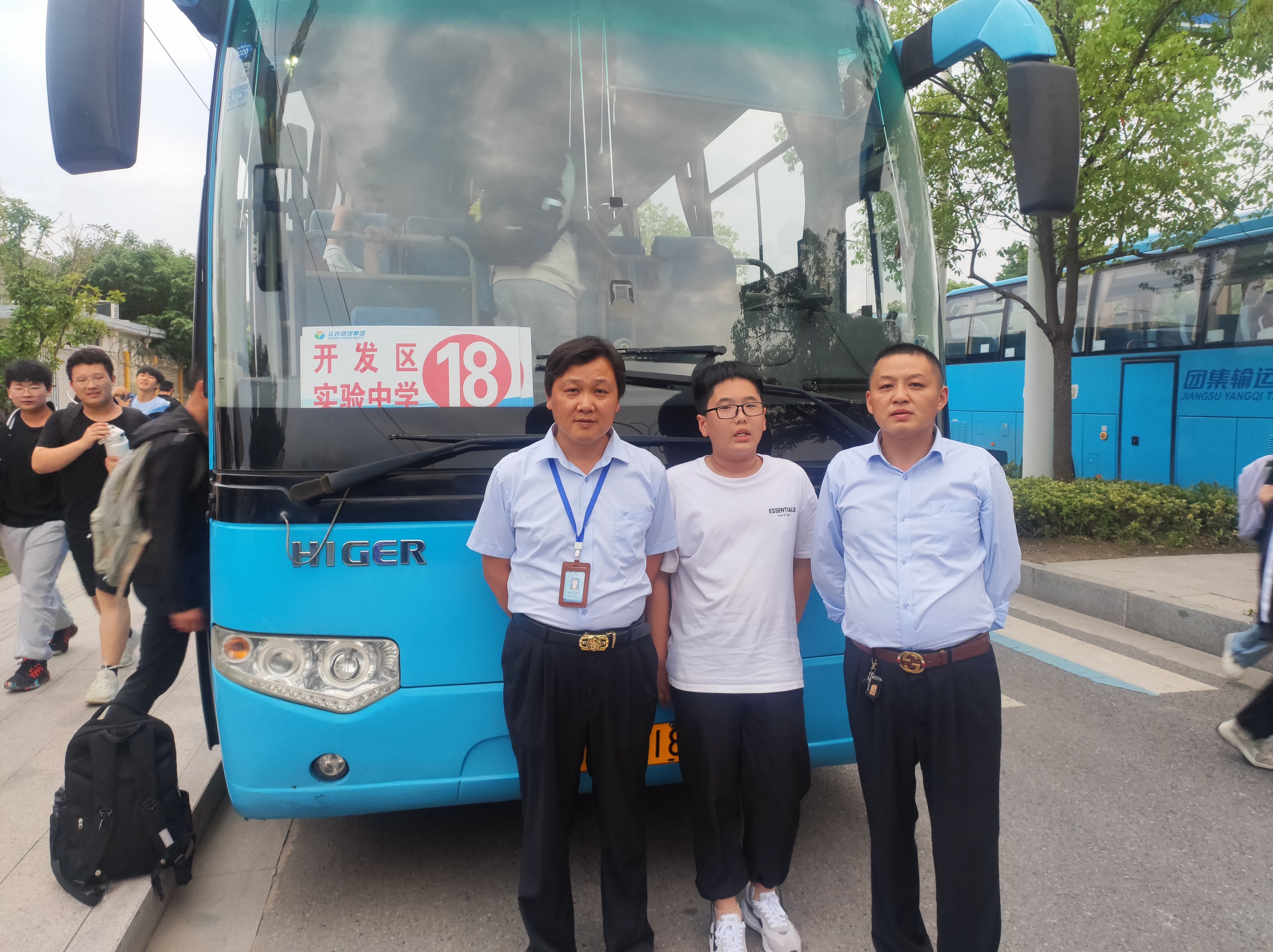 2022年9月26日晚,駕駛員葛斌師傅跟往常一樣,駕駛著經(jīng)濟開發(fā)區(qū)實驗中學(xué)專線校車,開往每一位學(xué)生回家的站臺。當葛師傅駕駛校車接送學(xué)生到揚子津路藍爵莊園站臺,車子停穩(wěn)后開車門并及時提醒學(xué)生過馬路注意安全,然后學(xué)生開始下車,沒過1分鐘左右就看到一輛電動車突然倒在地上,葛師傅聽到有學(xué)生喊車子撞到人了,趕忙下車查看,看見一輛電動車倒在路的北面,一名學(xué)生初一(3)班劉炫霖倒在路的南邊。葛師傅立刻走到被撞傷的學(xué)生身邊,關(guān)心的詢問學(xué)生有沒有撞傷哪里,學(xué)生說腿疼,葛師傅趕緊聯(lián)系了劉炫霖的父母,并扶著劉炫霖同學(xué)到路邊座下。然后及時上報校車班刁龍泉班長,說明情況,當時他車上還有其他學(xué)生的接送任務(wù),刁班長安排葛師傅繼續(xù)開車送其他學(xué)生回家,并及時趕到現(xiàn)場,等家長到了后并向家長說明情況才離開。接送任務(wù)結(jié)束后,葛師傅又主動聯(lián)系了家長詢問劉炫霖的受傷情況,得知并無大礙后才放心,家長在電話里向校車駕駛員和校車班組長表達了謝意。