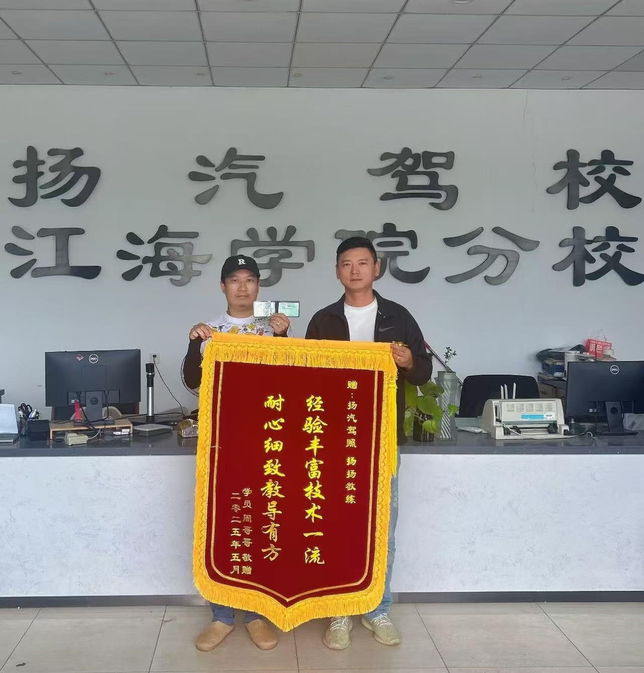 “這是我們最真摯的感謝!短短26天就順利通過了科目二、科目三考試,一個(gè)多月就拿到了夢(mèng)寐以求的駕照,那種喜悅和激動(dòng),簡(jiǎn)直就像收到大學(xué)錄取通知書一樣!”近日,在揚(yáng)汽駕校,學(xué)員金正媛、周陽滿懷感激地將一面鮮紅的錦旗遞交給李乾揚(yáng)教練。